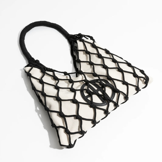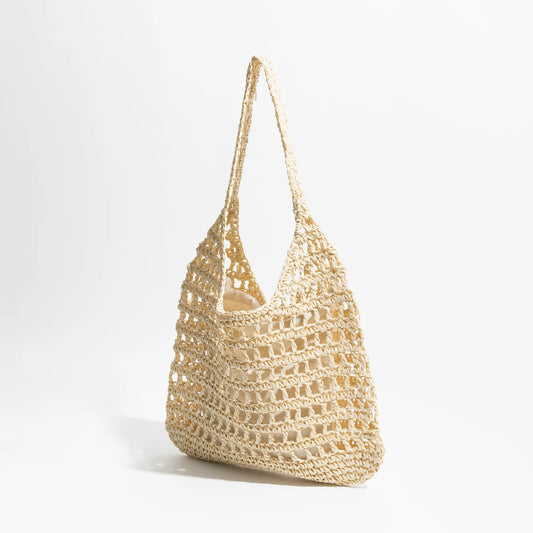 Plaited Woven Women's Aesthetic Beach Bag Hollow Design Unique Fishing Net Shoulder Purse Handwoven Summer Hobo Handbag