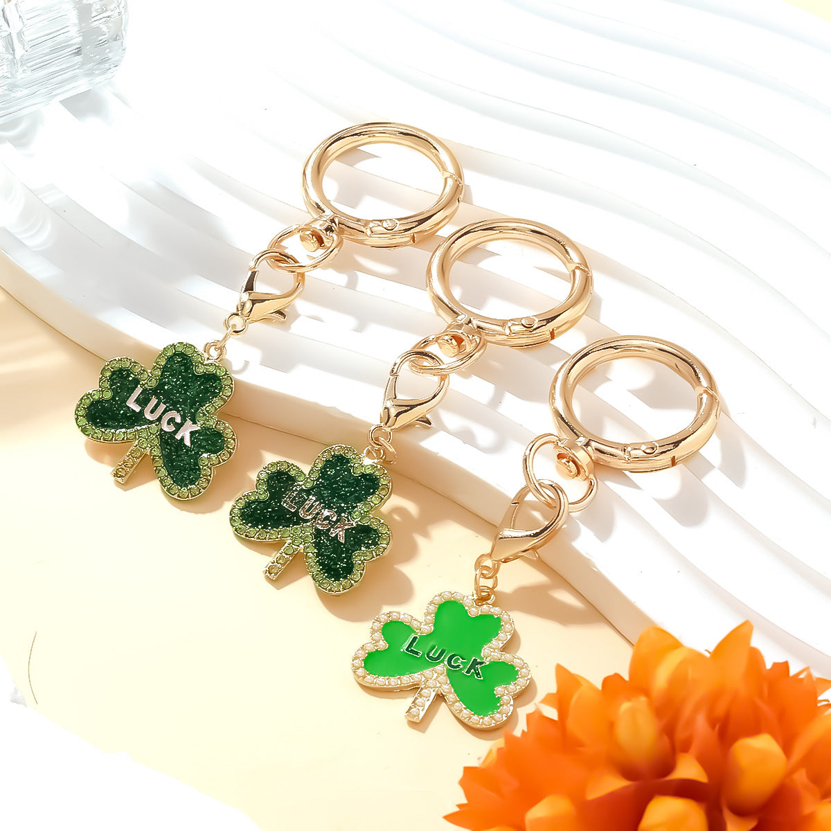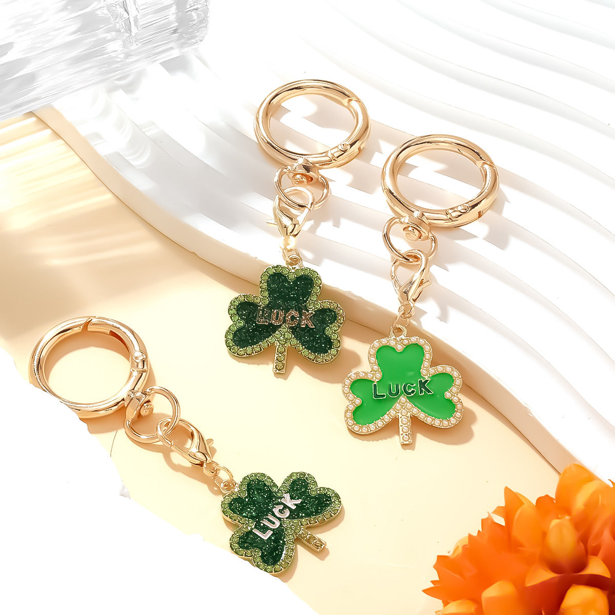 Description: A charming luck-inspired pendant keychain featuring a beautifully crafted four-leaf clover design—enamel or resin on a sturdy metal base. Lightweight yet durable, it brings a dash of positivity and playful style to keys, bags, or backpacks. A wonderful gift or personal good-luck charm!